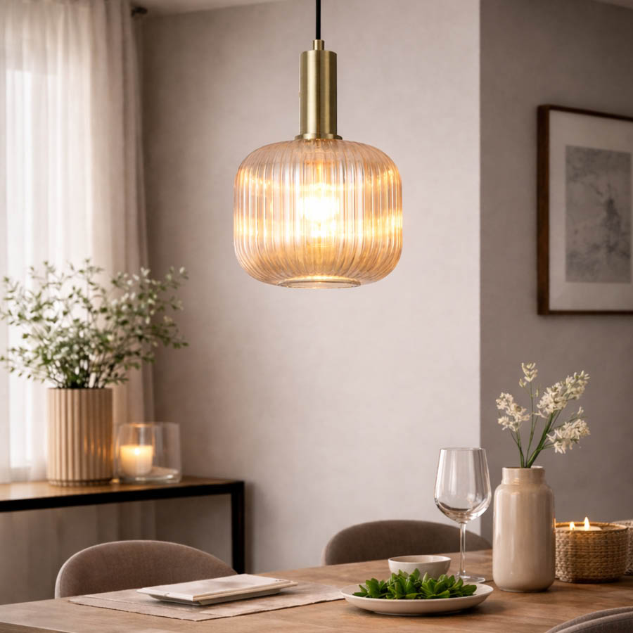 - COLOUR: ANTIQUE BRASS + AMBER GLASS + FABRIC CORD