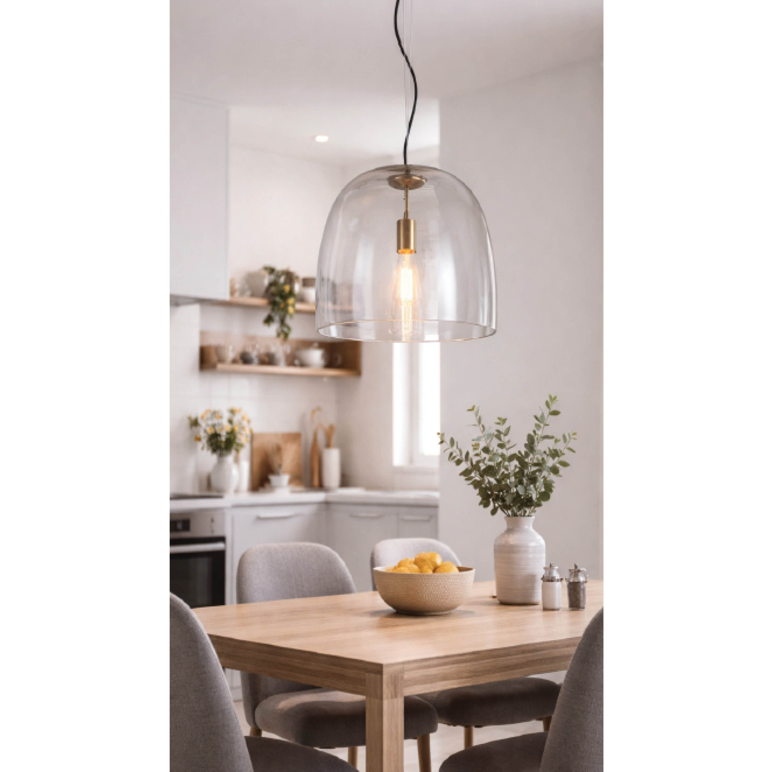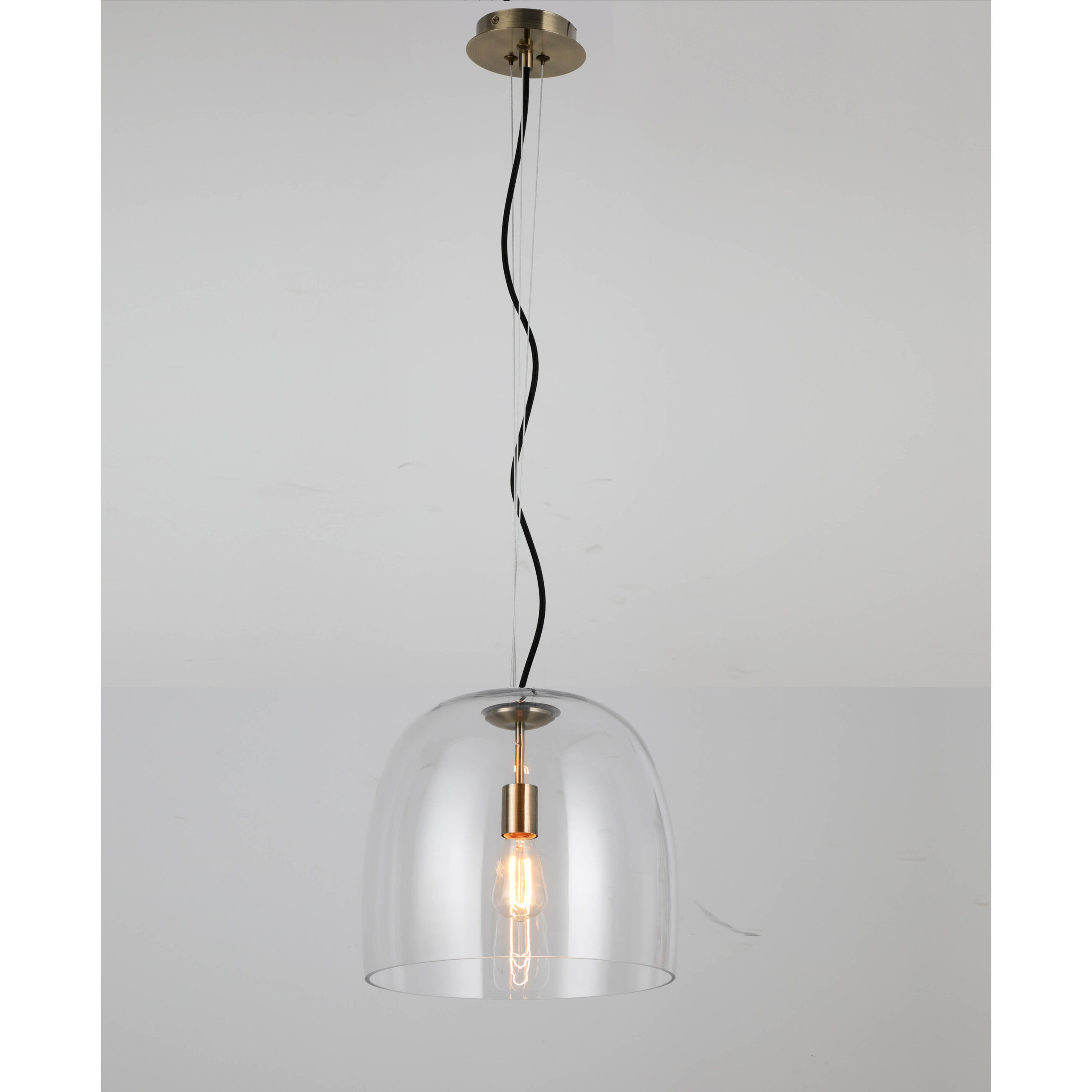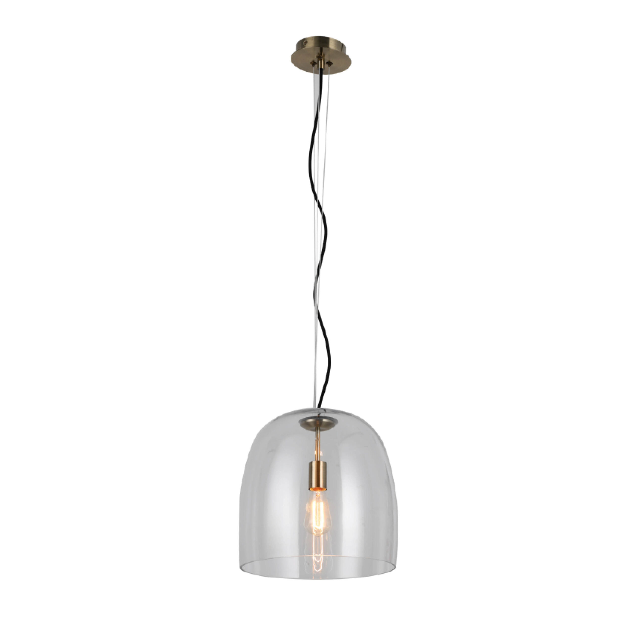 PENDANT FITTING E27 350X360MM ANTIQUE BRASS+CLEAR GLASS – KAV436