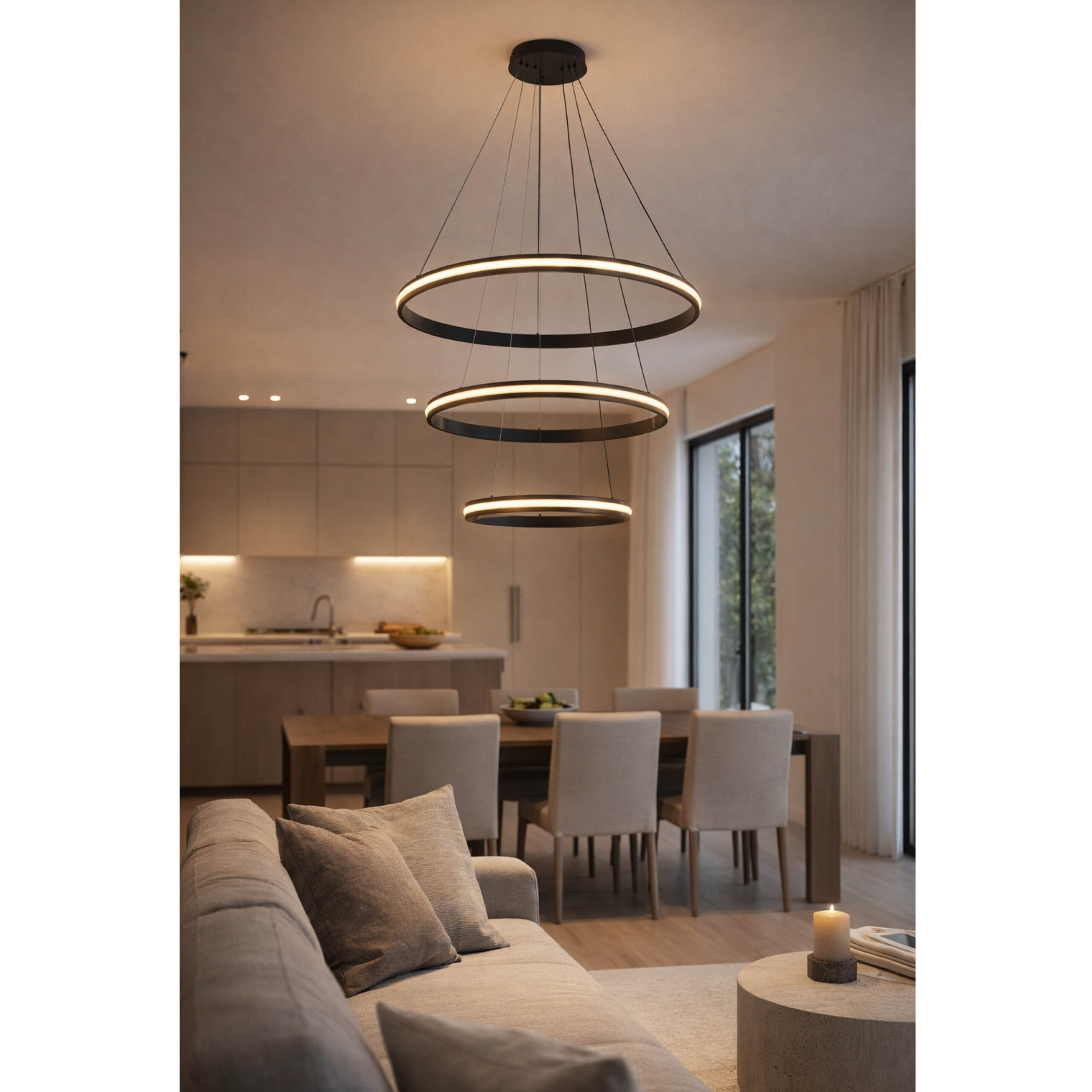 PENDANT FITTING LED 80W 800X1500MM BRUSH BLK 3CCT DIM – KAV917/D800